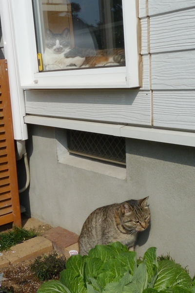 こういう日は猫達は窓際に集まってきてひなたぼっこ。