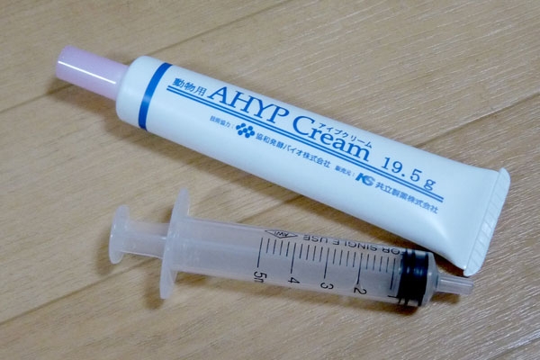 ちなみにスポイトは傷口が深いので、軟膏をスポイトに移して、傷口に注入するんだそうです。そしてお薬は皮膚再生を促すお薬らしい。「2~3日後に見せてくださいね。」って事でした。