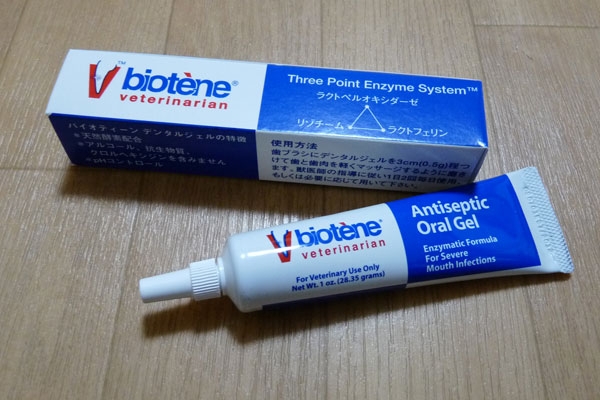さて…猫達も老いてきているので、歯周病問題が…。ボスだけしか指摘されなかったけど、歯茎が一部若干赤くなっていて、歯石も溜まっているとの事。…で、赤ちゃんの歯磨きみたいにガーゼに写真のデンタルジェル(動物用)を付け、軽く歯の汚れを取って下さいとの事。うーん。すごく嫌がるだろうから、一人では無理やな~~。一人が押さえつけて、一人が歯磨きするしか無いか?